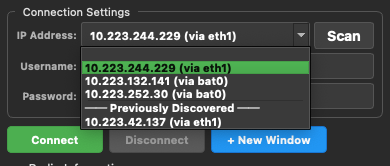Once the devices are discovered they are selectable in the drop-down menu.